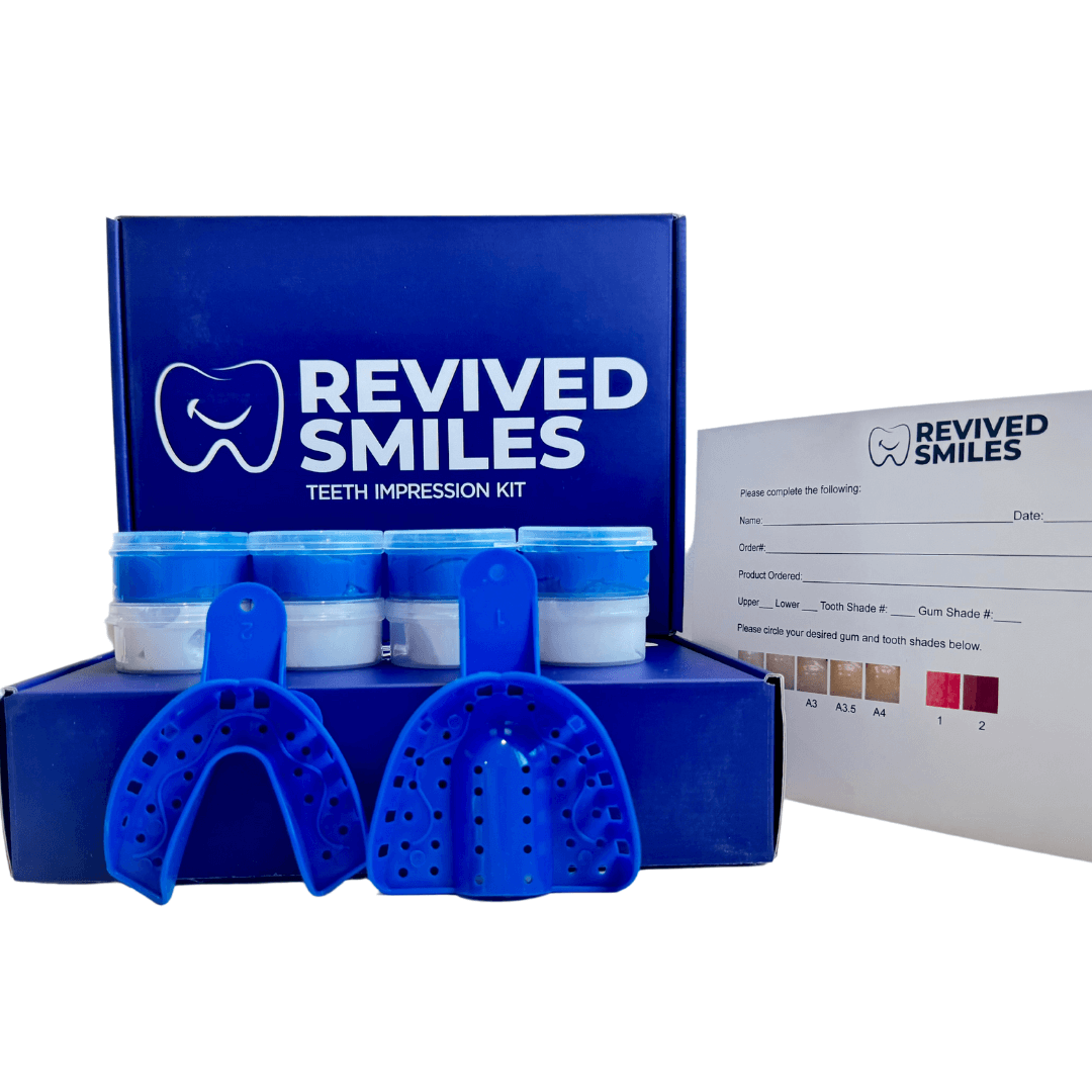 Solicite su aparato dental personalizado y reciba su kit de impresión y guía de tonos para elegir el tono de diente y encía.